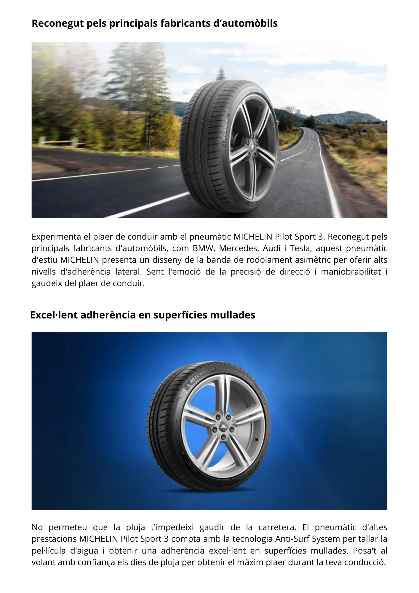 Reconegut pels principals fabricants d'automòbils, el pneumàtic 245/40 ZR18 97Y MICHELIN Pilot Sport 3 d'altes prestacions ofereix una adherència excel·lent en superfícies mullades i un plaer de conducció més gran.