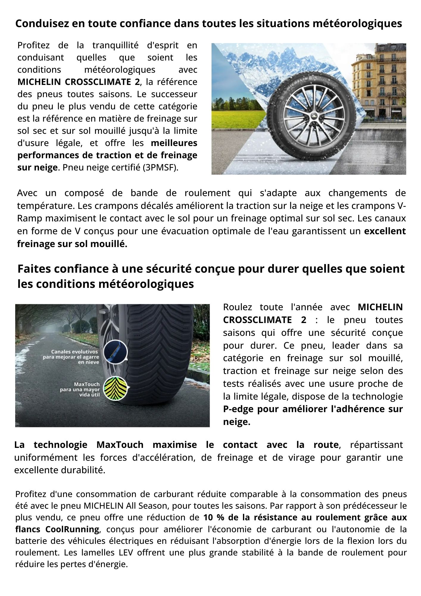 Continuez à rouler, quel que soit le temps, avec le pneu qui domine la catégorie All Season : 255/35 R20 97Y MICHELIN CROSSCLIMATE2. Il conserve ses avantages du premier au dernier kilomètre, gage de sécurité.