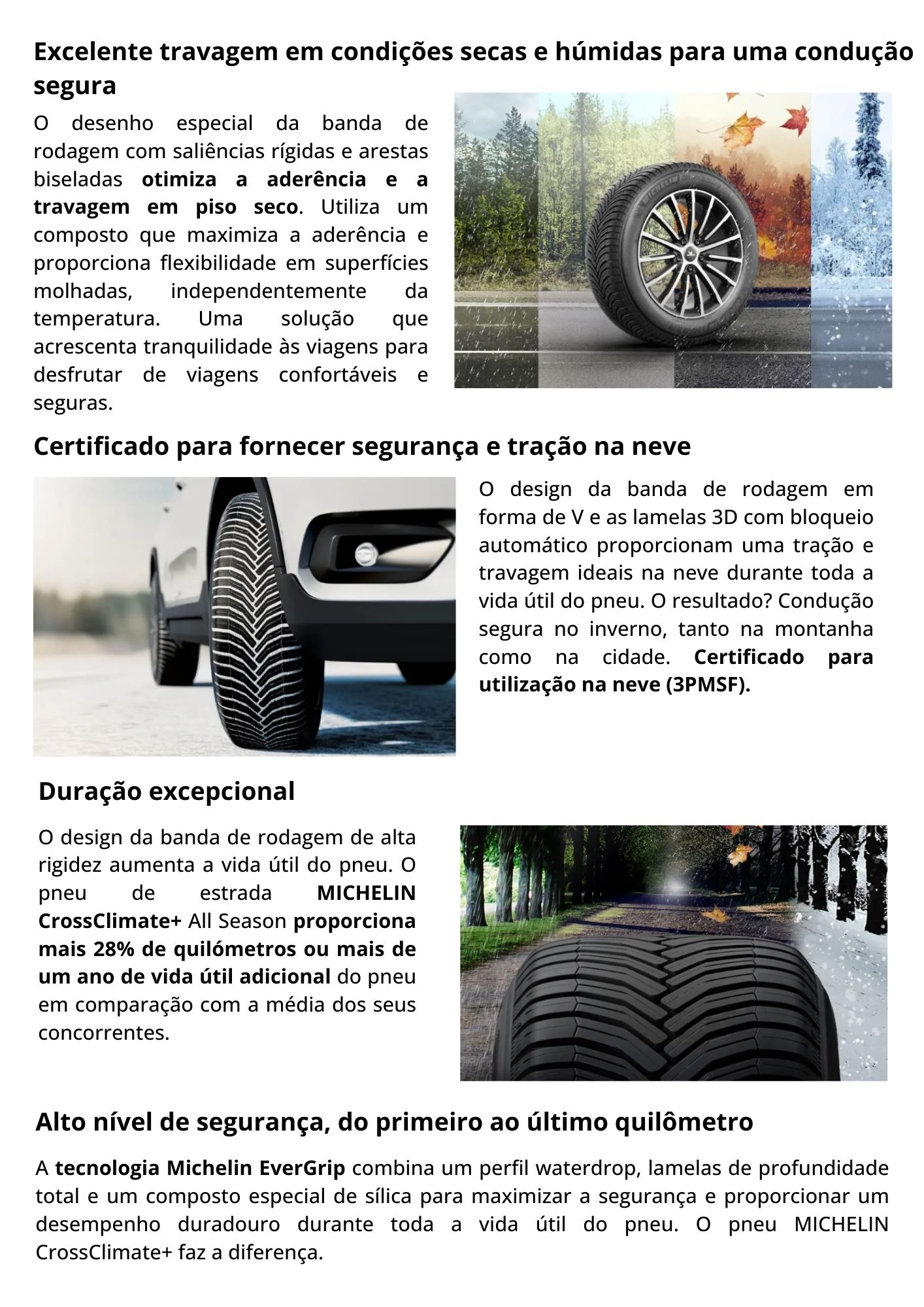 225/40 R18 92Y MICHELIN CROSSCLIMATE+ para Turismo com excelente segurança e durabilidade do primeiro ao último quilómetro, independentemente das condições meteorológicas.